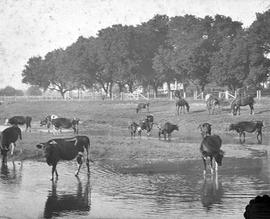 This collection consists of 33 black and white glass lantern slides that appeared to have been shown as a presentation at a party in Highland Park, Illinois. One slide serves to introduce the presentation 18 slides depict an unidentified beach event. The remaining 14 slides feature people and landscapes, including Highland Park, Illinois ravines; Lake Michigan; local farms; and other (sine loco) scenes.